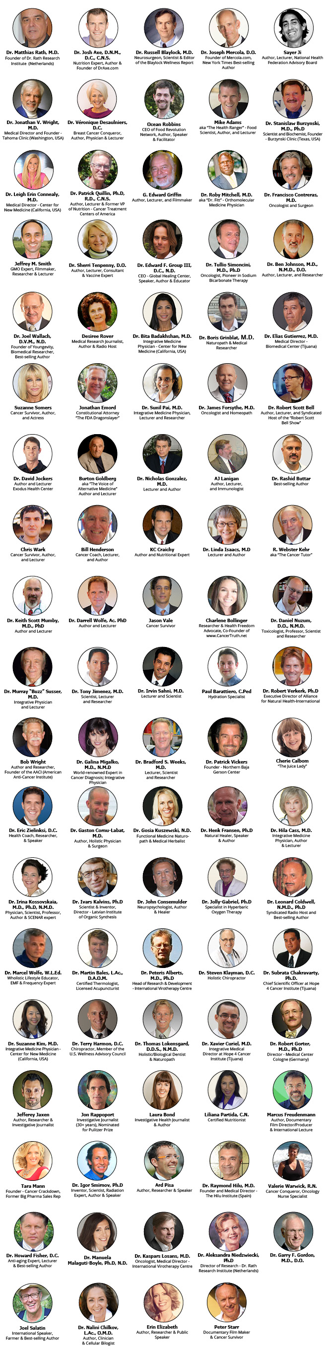 Over 100 experts from around the world were consulted and interviewed to bring you "The Truth About Cancer: A Global Quest". These experts included doctors, scientists, researchers and investigative journalists.