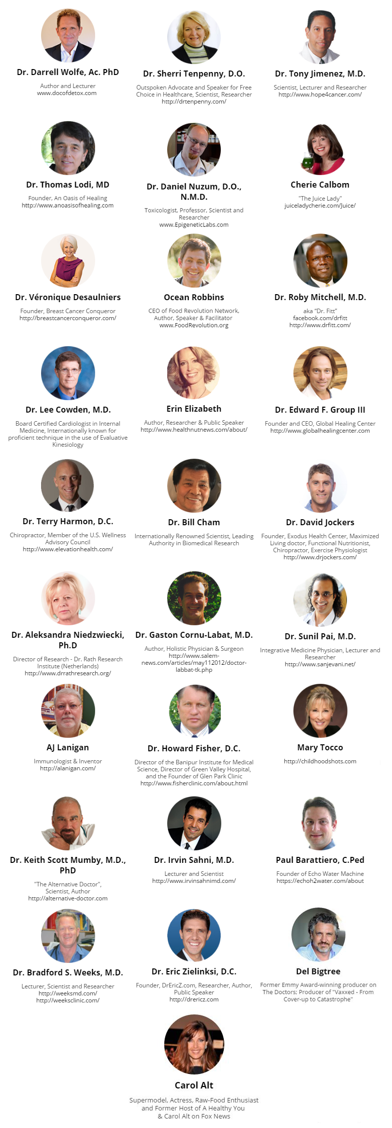Dr. Joseph Mercola... Mike Adams... Dr. Stanislaw R. Burzynski... Dr. Joshua Axe... Sayer Ji... Dr. Andrew Wakefield... KC & Monica Craichy... Dr. Jonathan Wright...